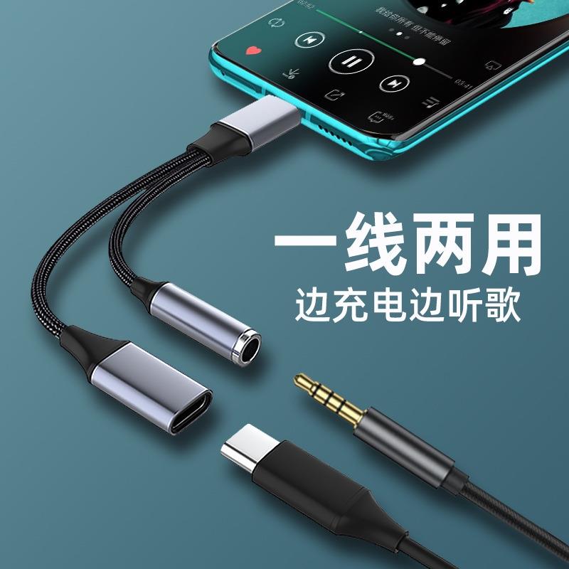 二合一多功能Tpye-c转3.5mm+type-c耳机转接头充电口适用数字音频