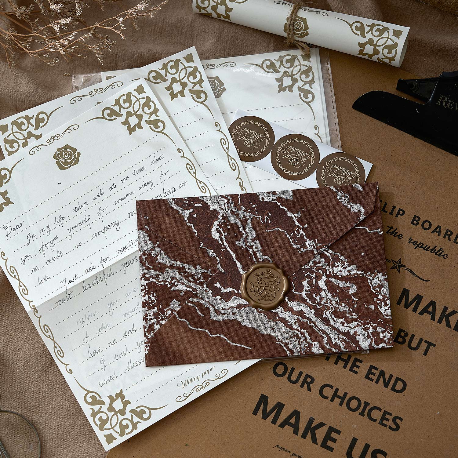 鎏金浮雕信封信纸套装浪漫复古情书牛皮手写高级感火漆蜡印章贴纸