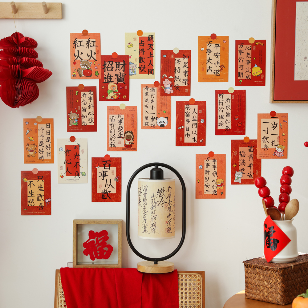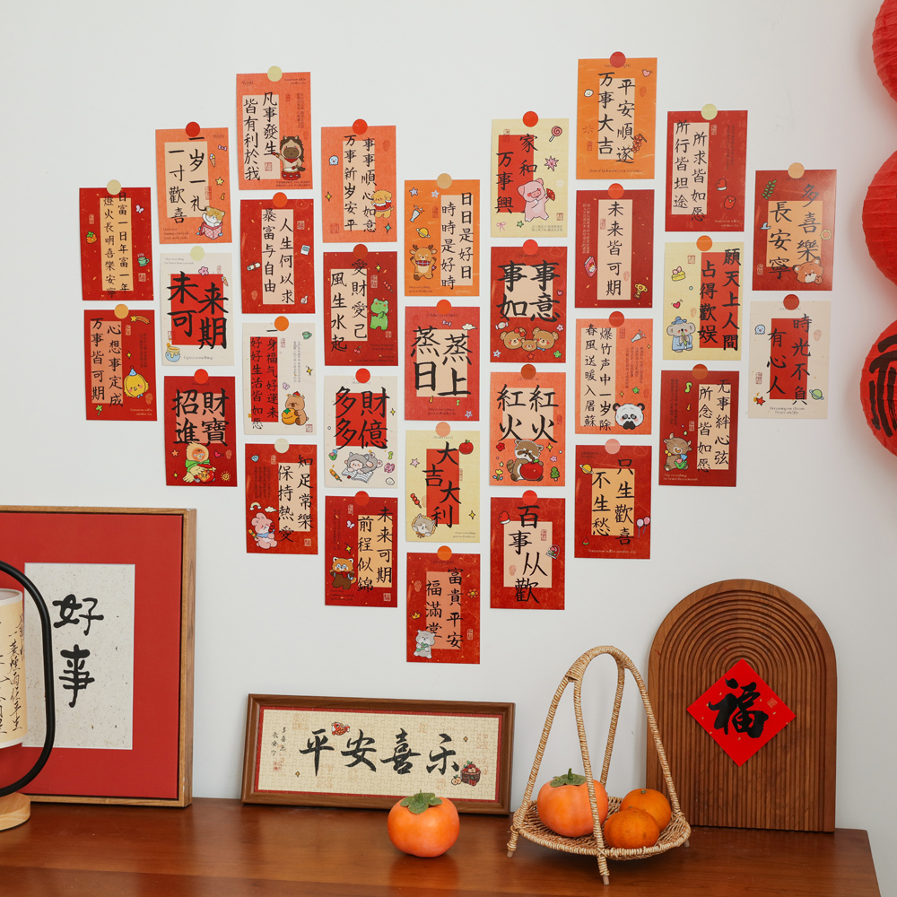 2025年有利于我好运连连卡片新年春节祝福墙面装饰贴励志文字中式明信片生日礼物结婚背景布置DIY素材贺卡片