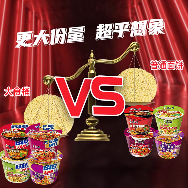 康师傅大食桶方便面泡面牛肉面big大桶装川渝泡椒烧麻辣速食老坛