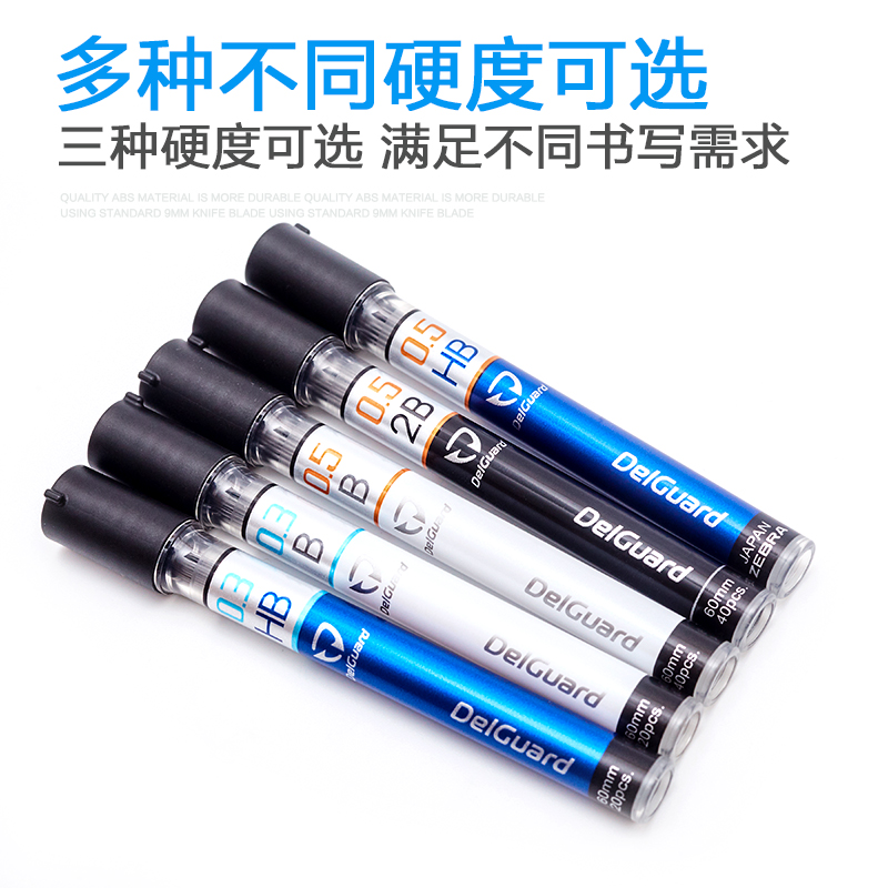 日本ZEBRA斑马铅芯delguard自动铅笔替芯不易断芯自动芯P-LD10活动铅笔笔芯2B/HB不易断芯0.7/0.5/0.3mm
