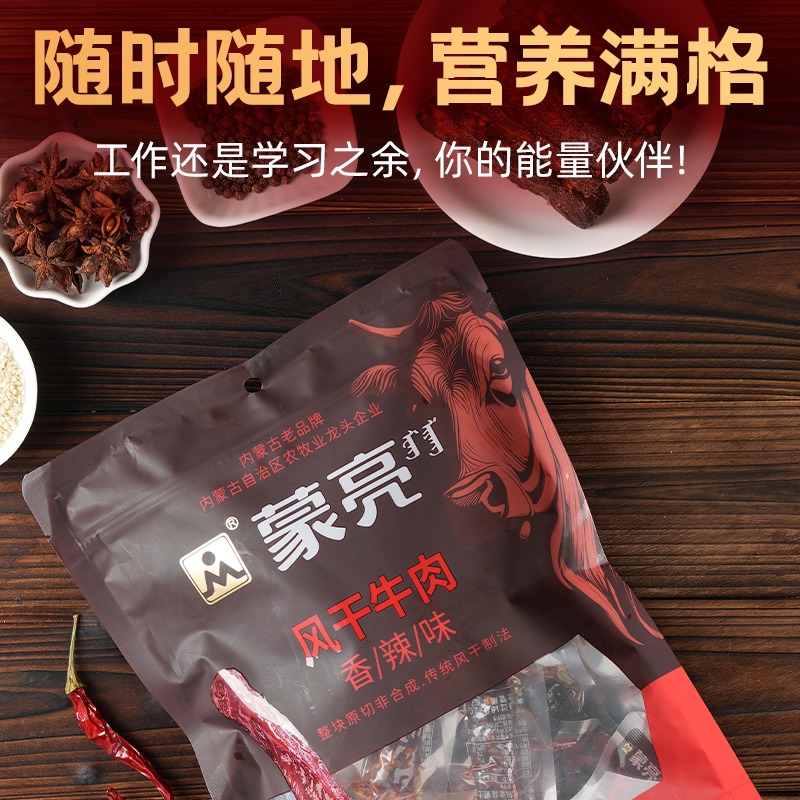 蒙亮内蒙古手撕风干牛肉干252g特产即食香辣牛肉真空独立袋装