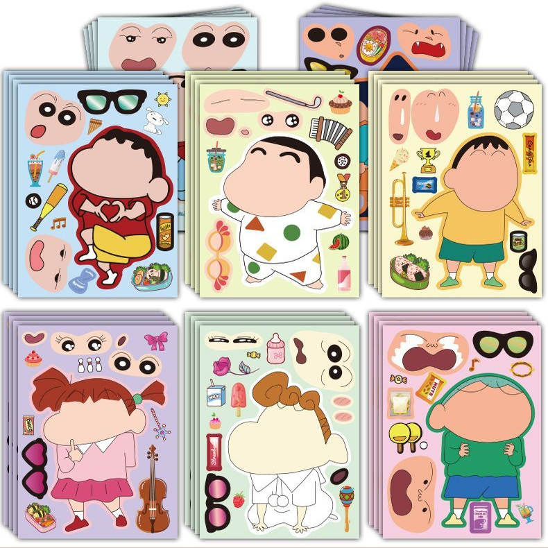 16张蜡笔小新换装贴纸卡通创意换装贴画父母奖励孩子早期益智玩具