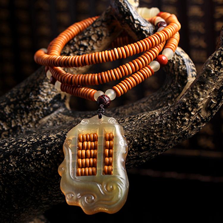 天然橄榄核片佛珠饰品搭配小叶紫檀圆珠羊角算盘DIY文玩手链批发