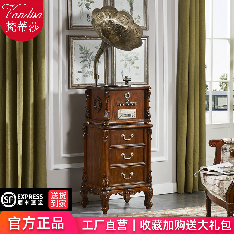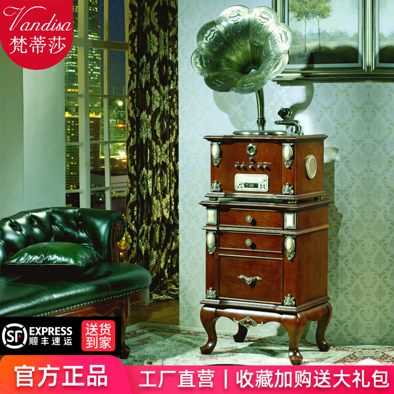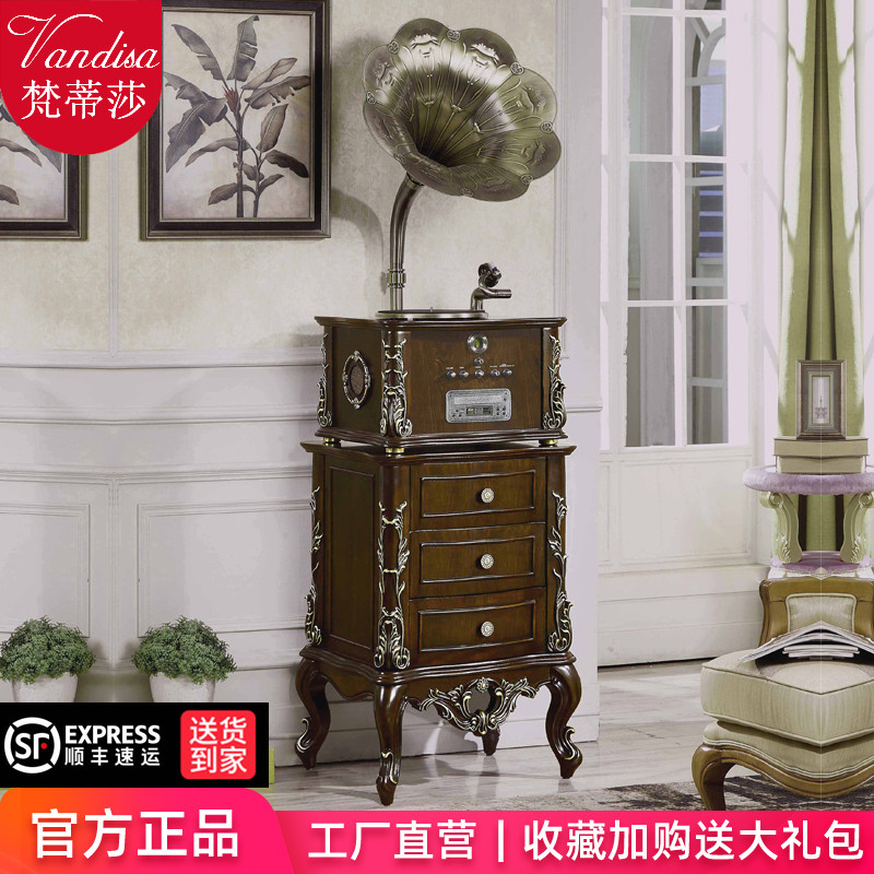 梵蒂莎欧式客厅仿古留声机复古黑胶唱片机老式大喇叭电唱机音响