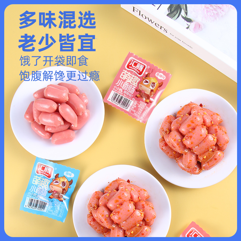 汇腾拇指肠烤香肠迷你肠小肉枣火腿肠热狗整箱零食批发香辣小香肠