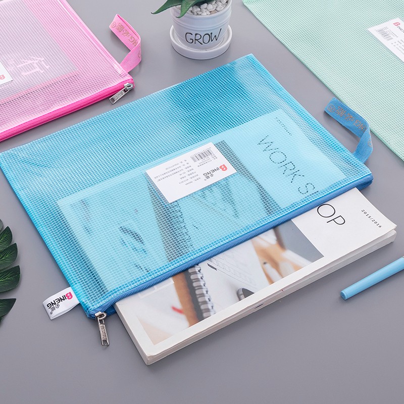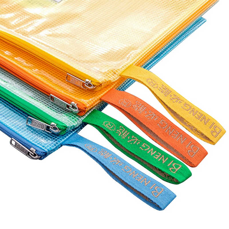 必能b4文件袋拉链式初中生小学生一年级手提资料袋防水加厚网格袋