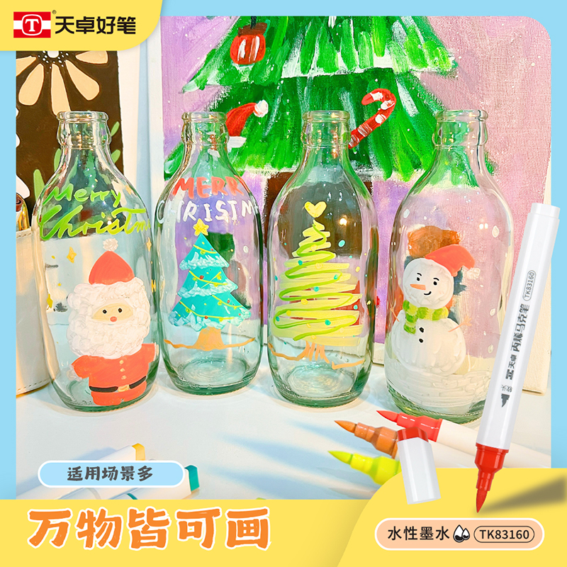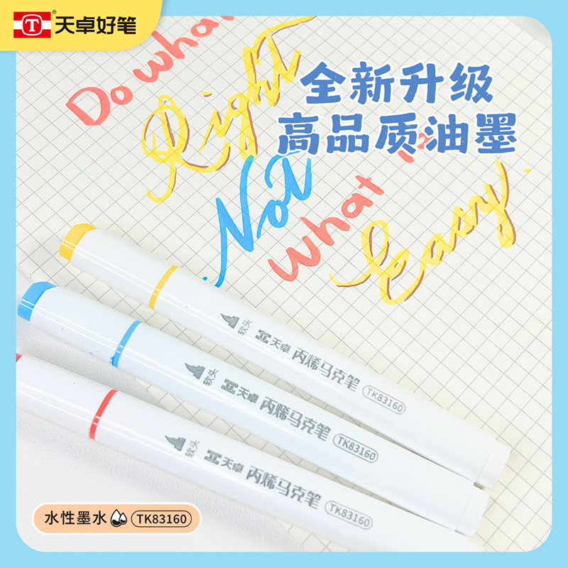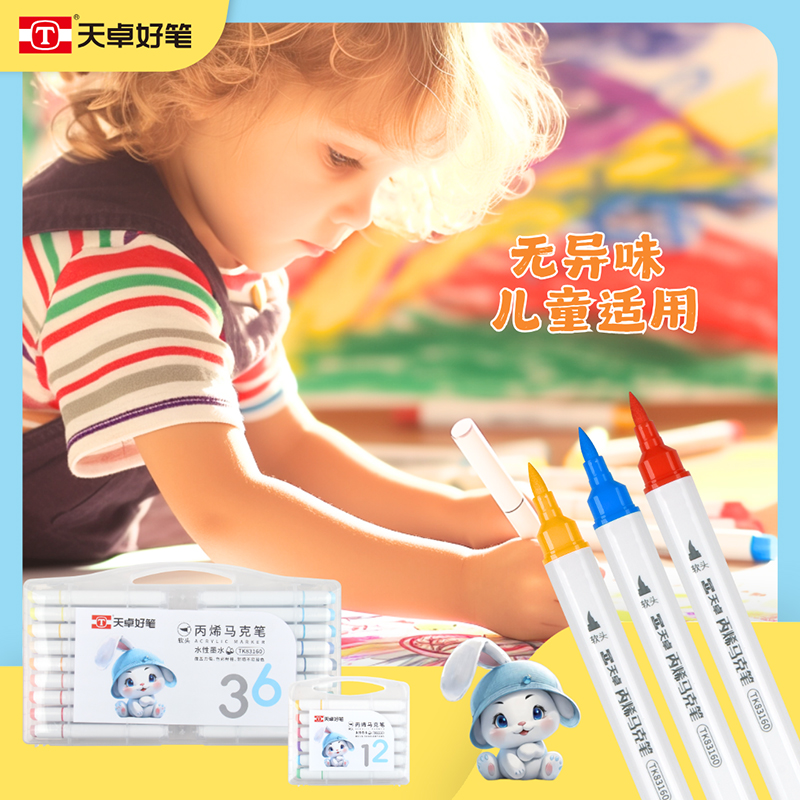 天卓丙烯马克笔软头水性墨水学生彩色笔鲜艳叠色儿童美术绘画手提盒装48色粗细可控水性可洗干后防水万物能画