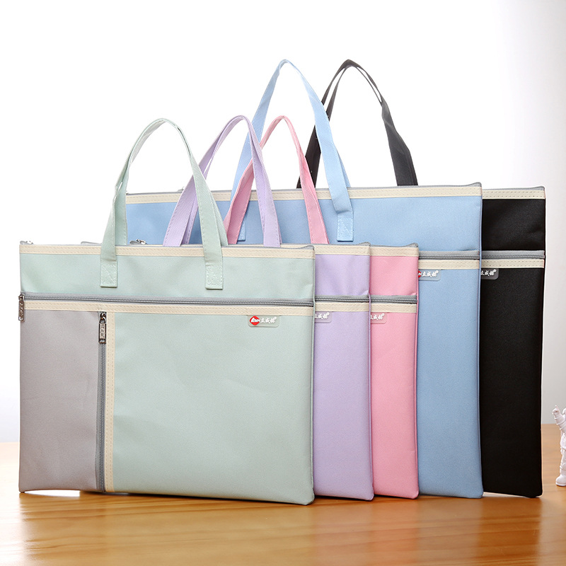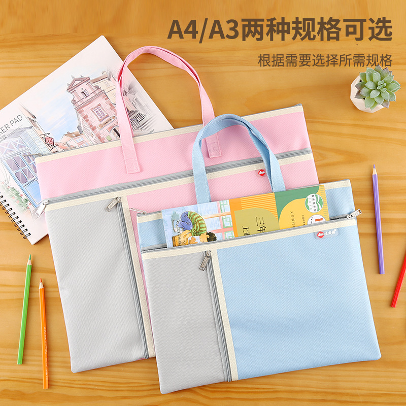 超大能装美术袋三层拉链式学生拎书袋文件袋加厚孕检资料袋孕妇产检档案手提收纳包牛津布补习收纳包上课