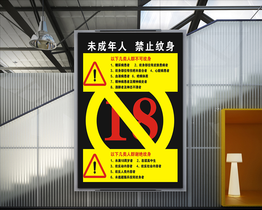 未成年人禁止纹身文身纹身店告知牌提示牌未满18周岁在读高中生糖尿病心脏病血液病患者人群不可纹身警示牌