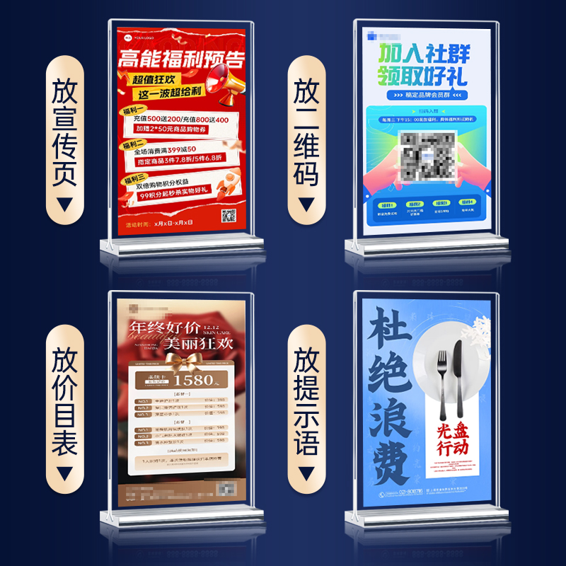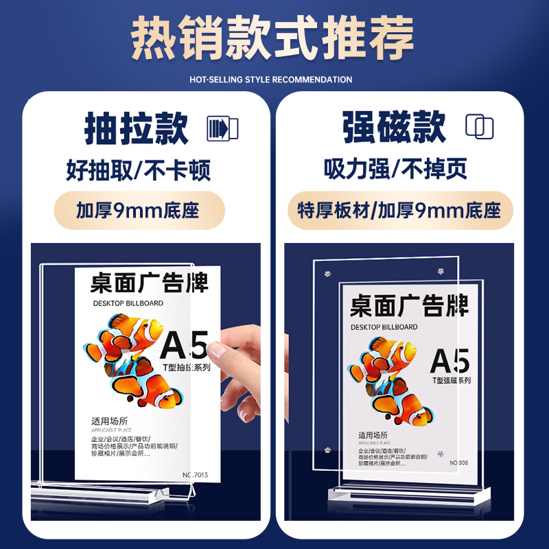 亚克力台卡架展示牌A4立牌桌牌底座台卡A6签桌面展示台牌双面透明立牌A5餐桌菜单价目广告牌价格牌展示牌