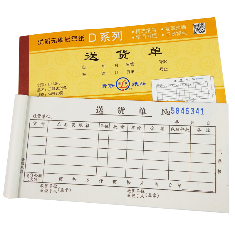 二联送货单批发青联D130-3-30两联出货单2联单据本54K无碳复写小号发货清单 每本30组