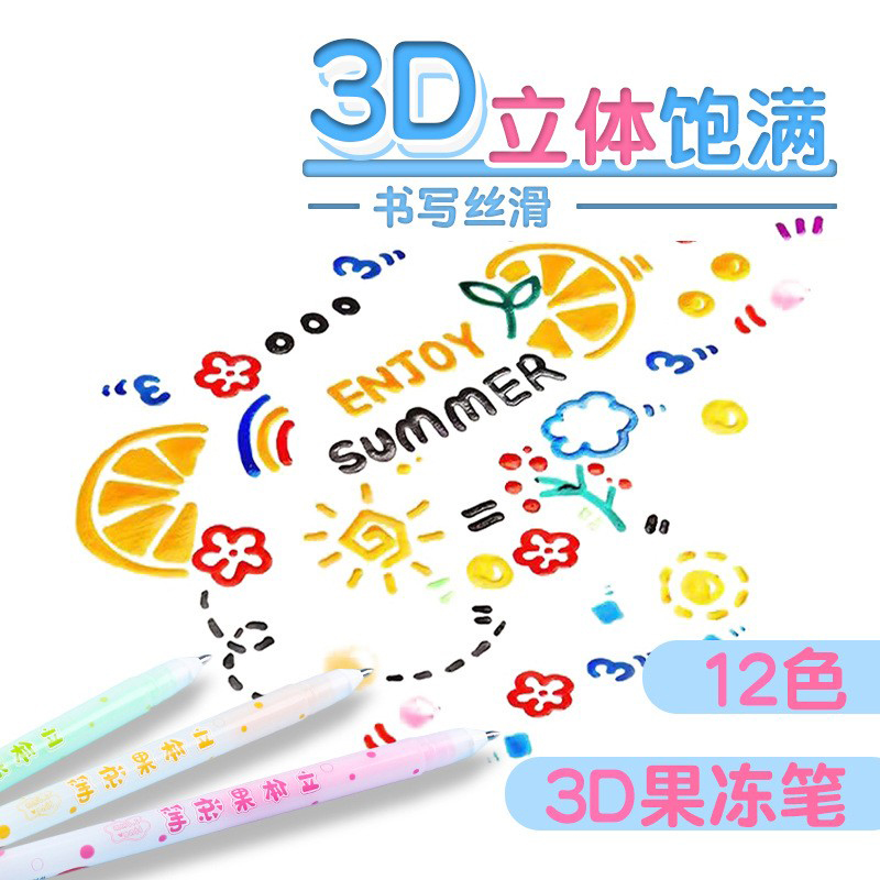 三年二班×魔卡3D立体果冻笔轮廓笔果汁笔多色手帐笔日系笔绘画笔涂鸦学生中性笔可爱创意少女心diy荧光笔