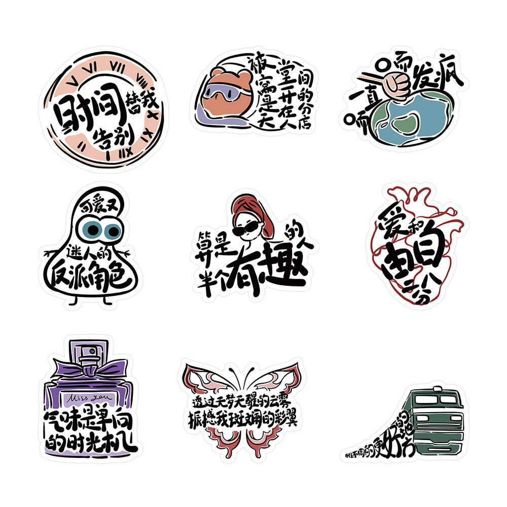 120张趣味精神状态文字diy装饰贴画网红爆款趣味脑洞文字贴纸创意