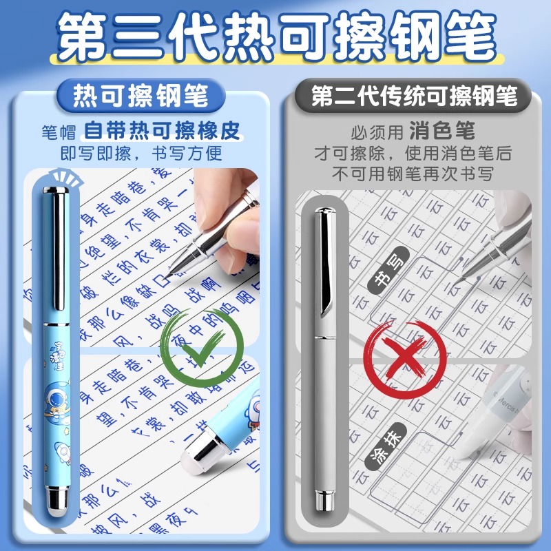英雄热敏可擦钢笔可爱渐变色小学生专用三年级卡通正姿墨囊练字笔