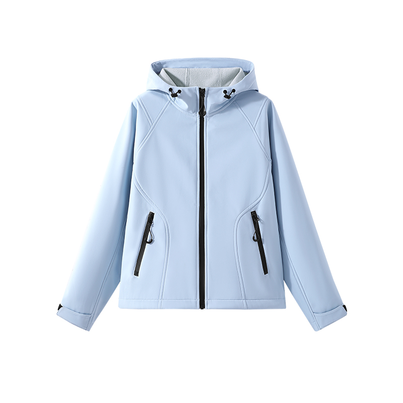 KV真维斯蓝色连帽防水外套女2025新款秋冬季宽松户外三防夹克女