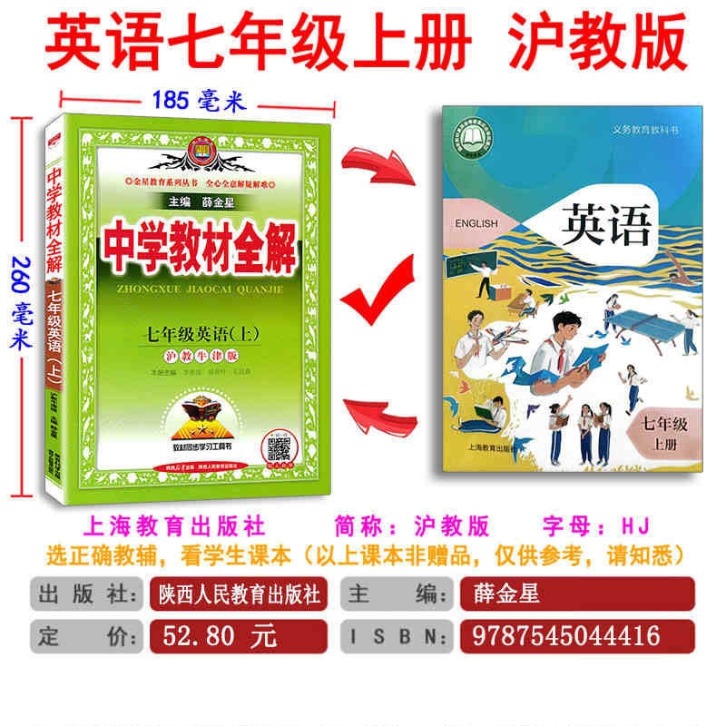 中学教材全解初中英语七年级上册沪教版HJ版上海牛津版薛金星初一7年级同步课本教材全解完全解读初中全解教辅资料