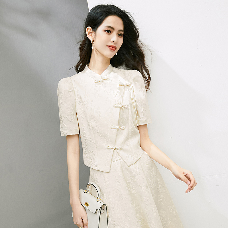 晚白2025年秋新款国风新中式气质提花立领通勤减龄淑女短外套女