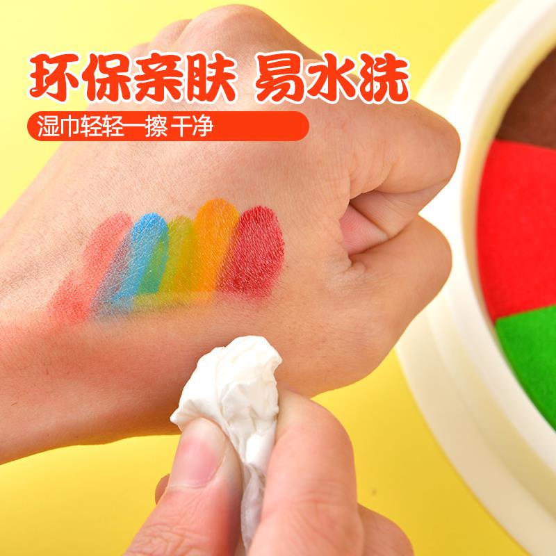 儿童手指画彩色印泥手印多色按指纹手印手掌画印泥印盘幼儿园安全颜料可水洗12色海绵印台小学生绘画工具印尼