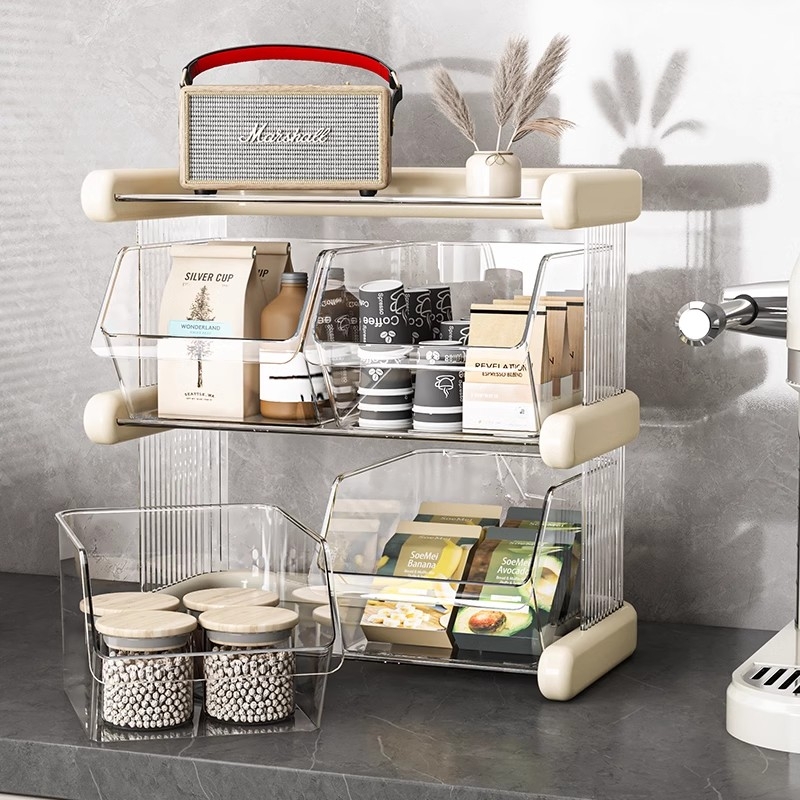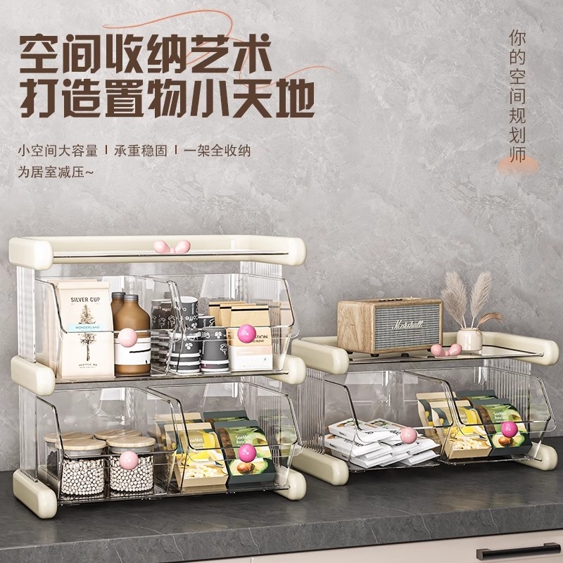 桌面收纳盒高颜值家用茶包放咖啡置物架吧台轻奢多层零食置物柜子