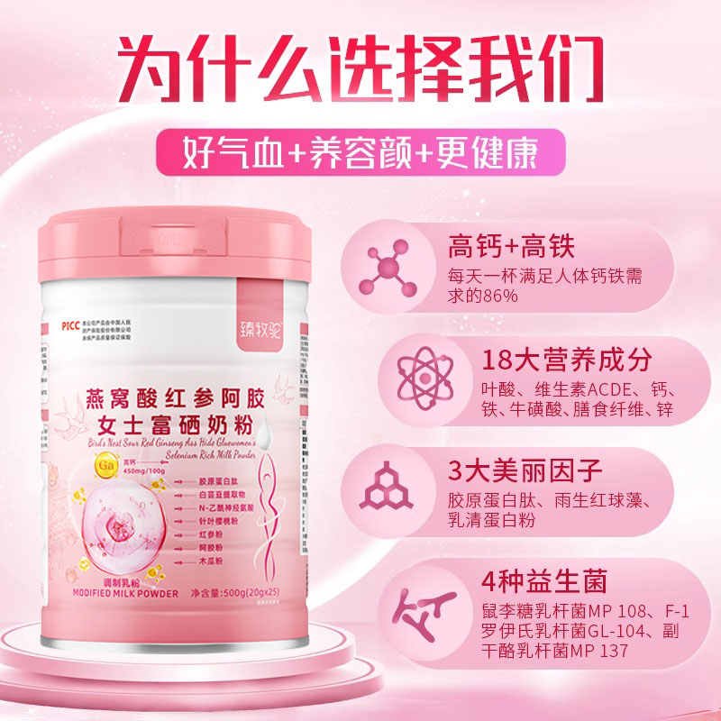 女士奶粉高蛋白高钙高铁成人营养胶原蛋白肽正品旗舰店气补气养血