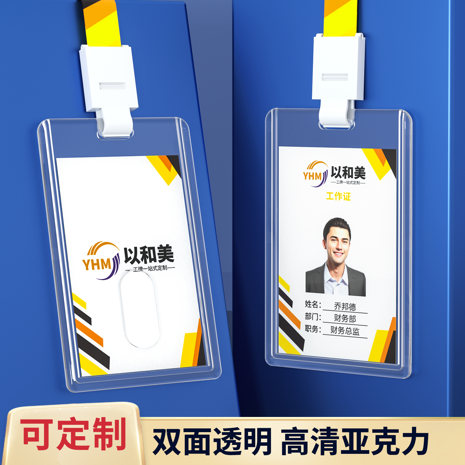 透明亚克力水晶工作牌证件卡套带挂绳工作人员厂牌卡套校园卡学生公交卡套饭卡LOGO工牌卡壳八达通校牌卡片套