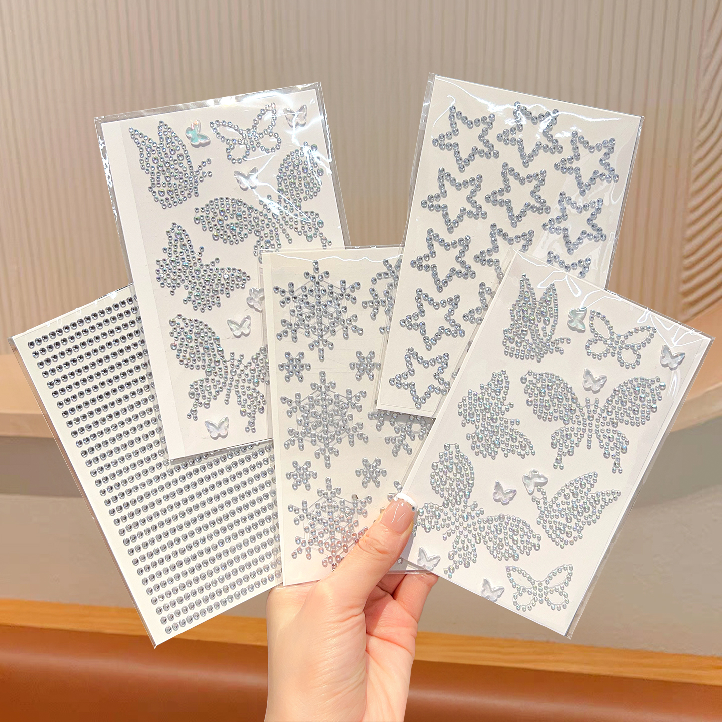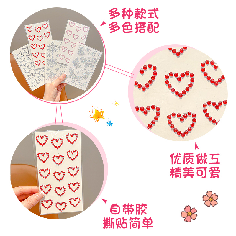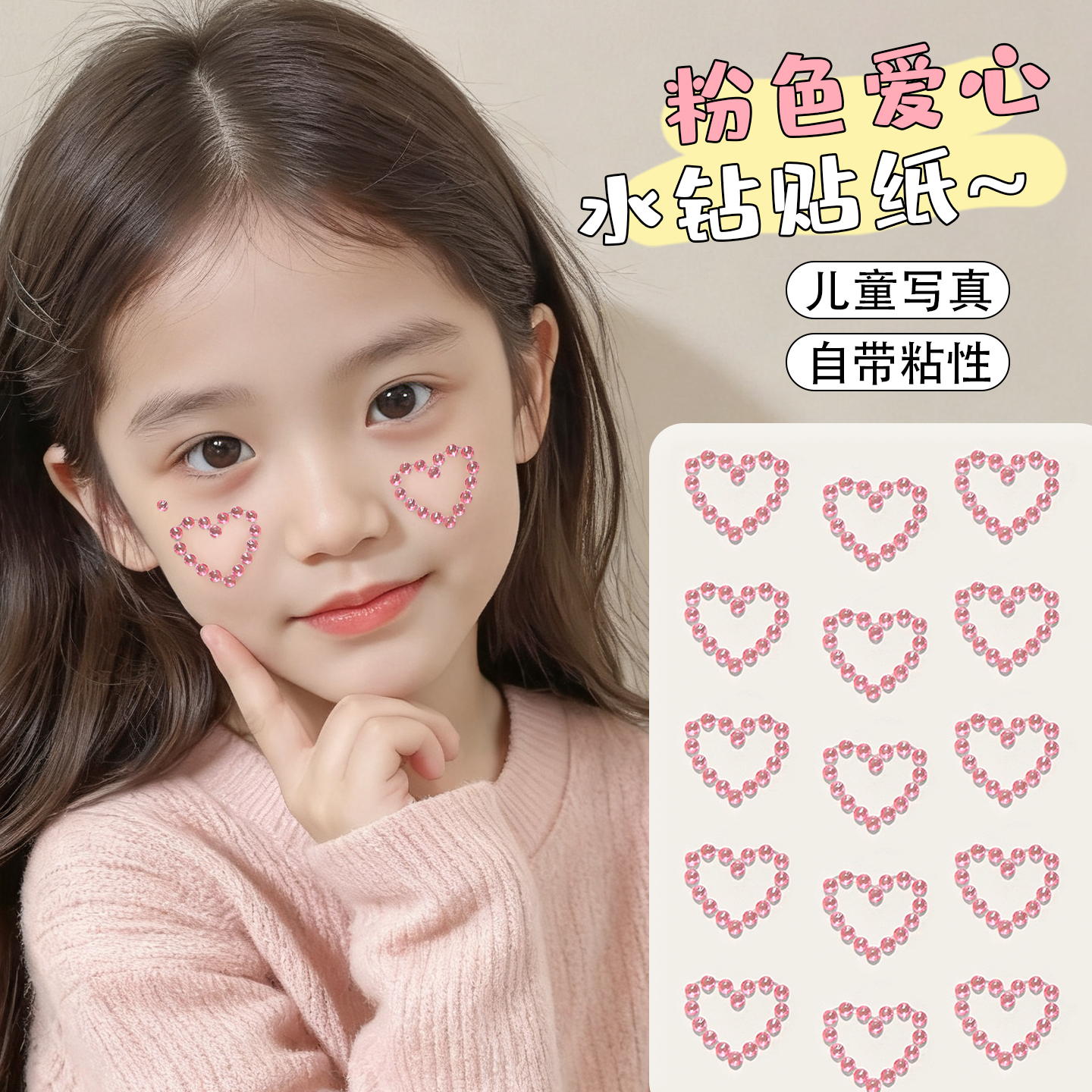 儿童钻石立体贴纸运动会脸部彩色自粘贴写真小女孩舞台表演妆容贴水晶蝴蝶结演脸上贴唱会珍珠贴画奖励装饰