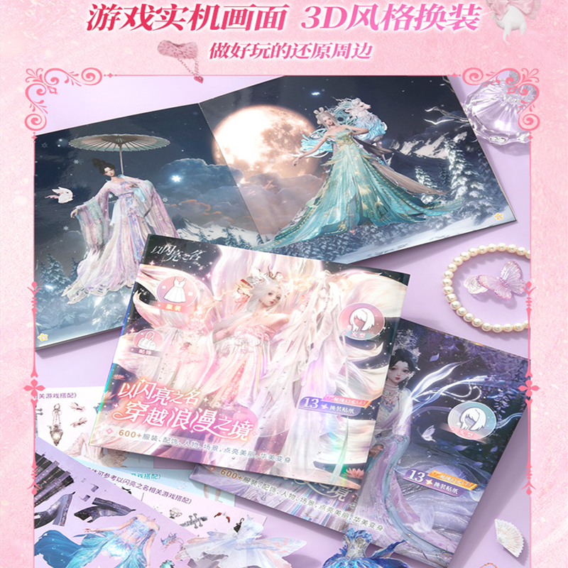 (以闪亮之名)联名免剪裁没有白边高颜值换装贴纸书芯陌限定周边秘境幻术系列收藏实物模切贴纸互动可重复粘