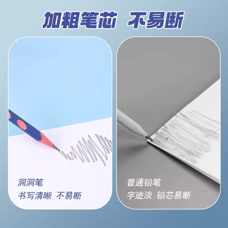 洞洞铅笔小学生专用一二年级2B铅笔矫正握姿幼儿园初学者特粗大三角HB2比练字考试涂卡正品无毒写字海豚素描