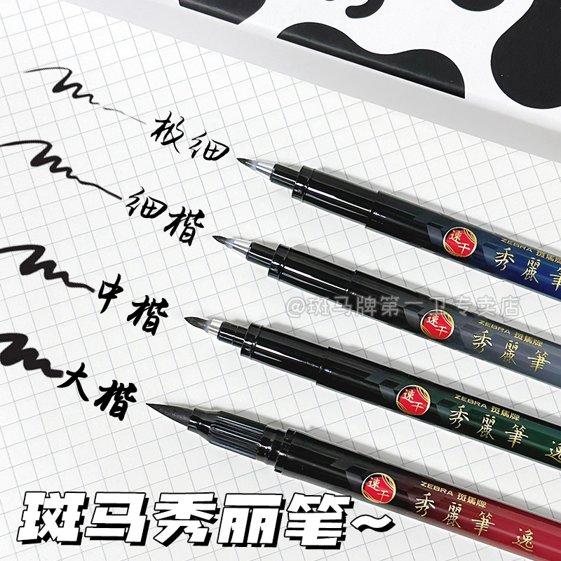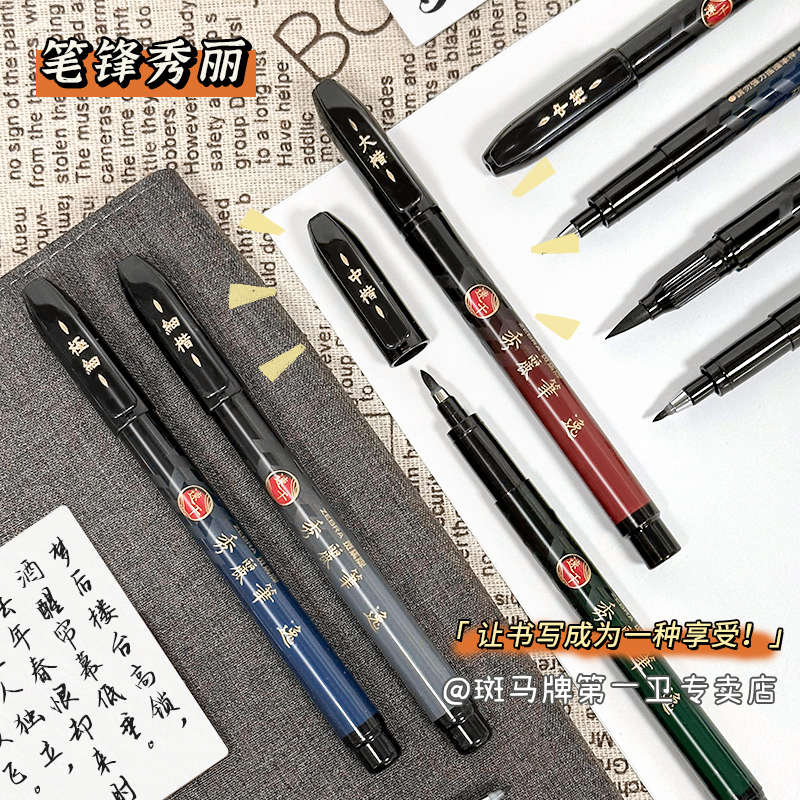 【第一卫】日本zebra斑马秀丽笔速干小楷易出锋软笔防水中楷极细细楷临摹练字帖成人书法大楷海绵头软头黑色