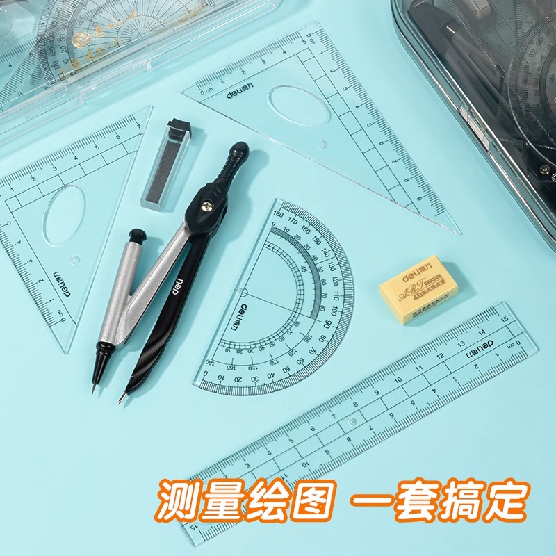 得力圆规尺子七件套装考试工程技术绘图工具多功能画图套装学生用