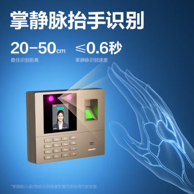 得力33800考勤机 打卡机人脸+指纹 打卡 免软件免网络 三步简单设置 自动生成报表 U盘导报表