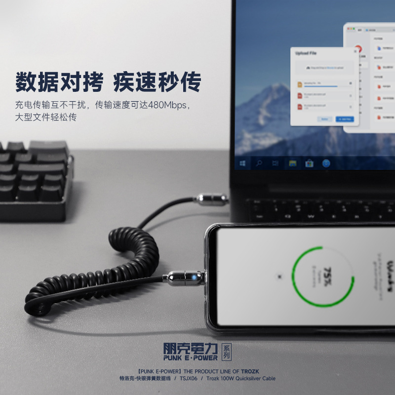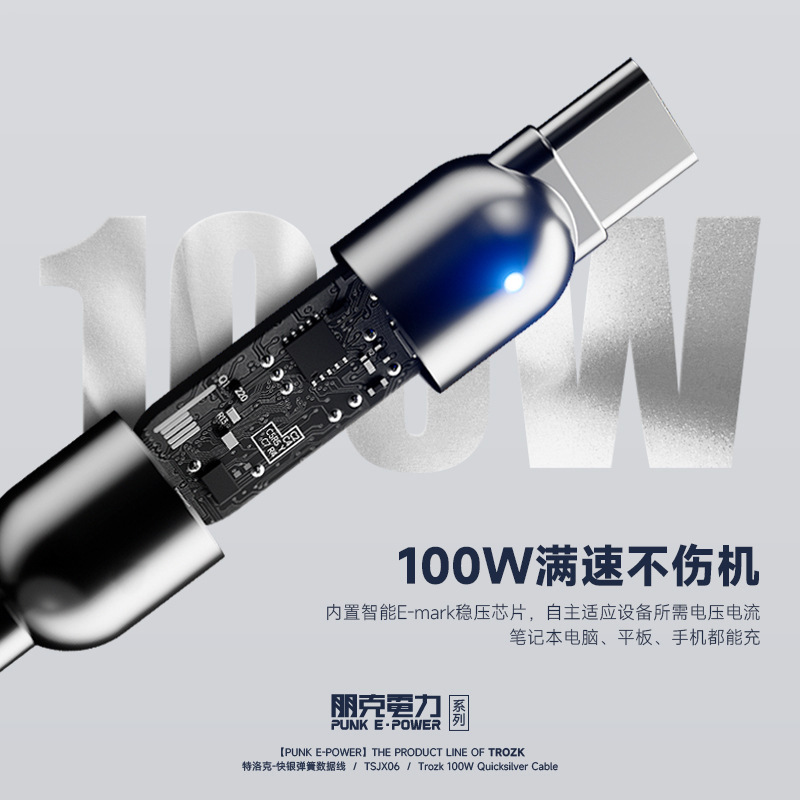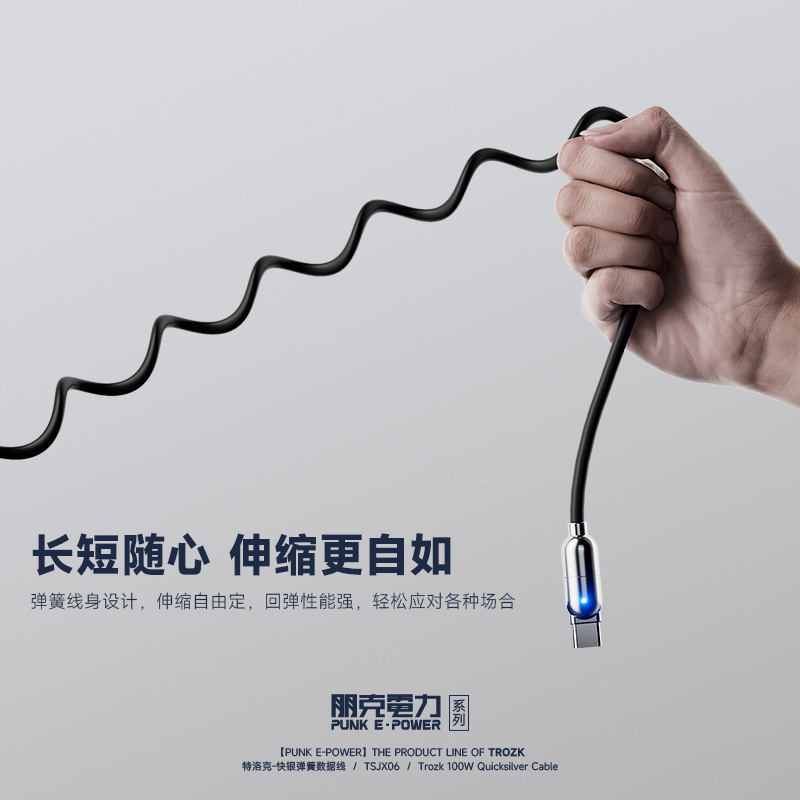 特洛克弹簧数据线适用苹果手机27W快充新款100W安卓type-c充电线支持笔记本苹果华为充电安卓