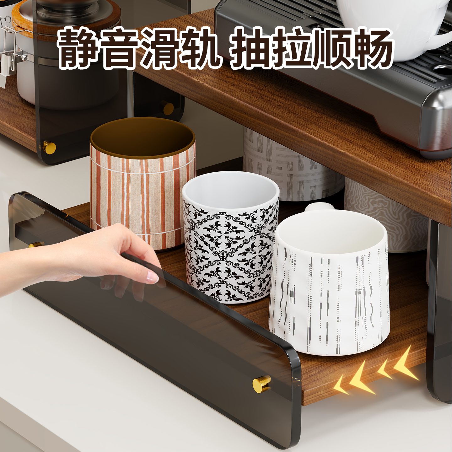 中古风桌面咖啡机置物架办公室多功能抽屉式咖啡器具摆放置物架子