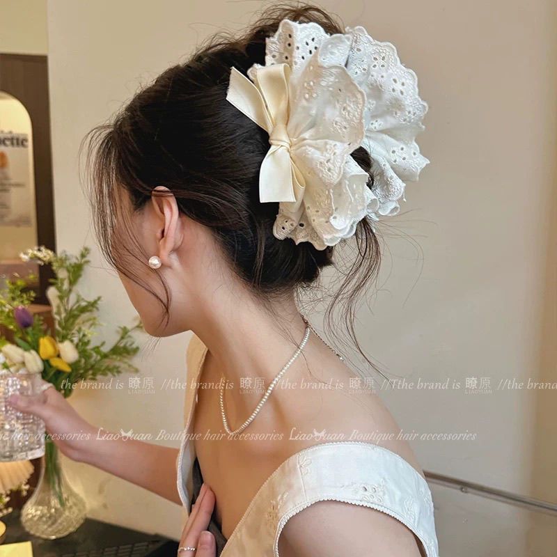 法式蝴蝶结抓夹女大号发2025新款花朵鲨鱼夹高级感量大发夹后脑勺