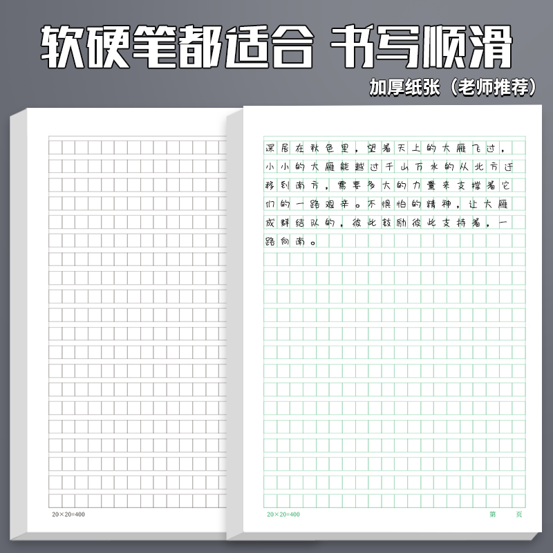 16k稿纸作文纸300格400格500格学生专用申请书加厚护眼写作纸16k400格单线纸双线纸田字米字格方格绿色学校