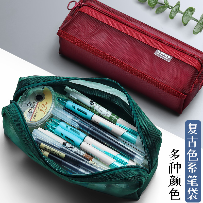 不要动我的笔袋复古双层透明网纱笔袋考试专用大容量文具袋简约高考铅笔袋新款高级感学生初中中学生文具袋