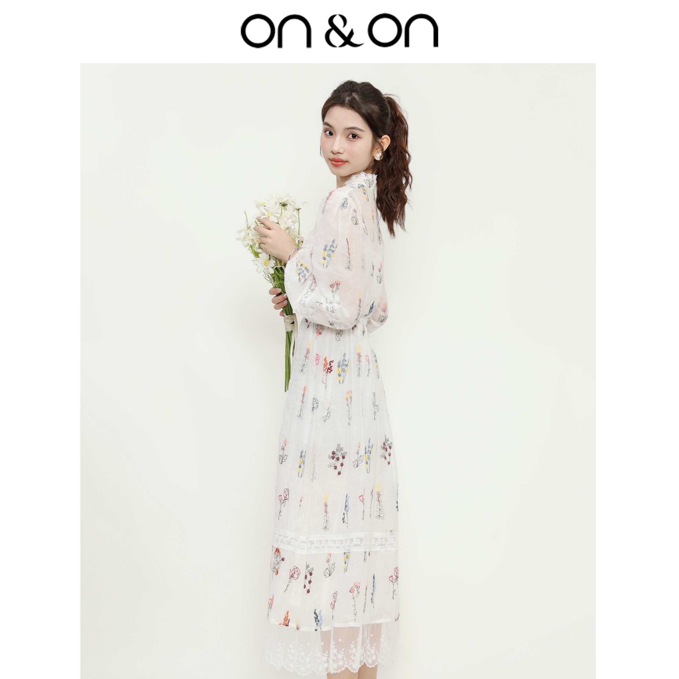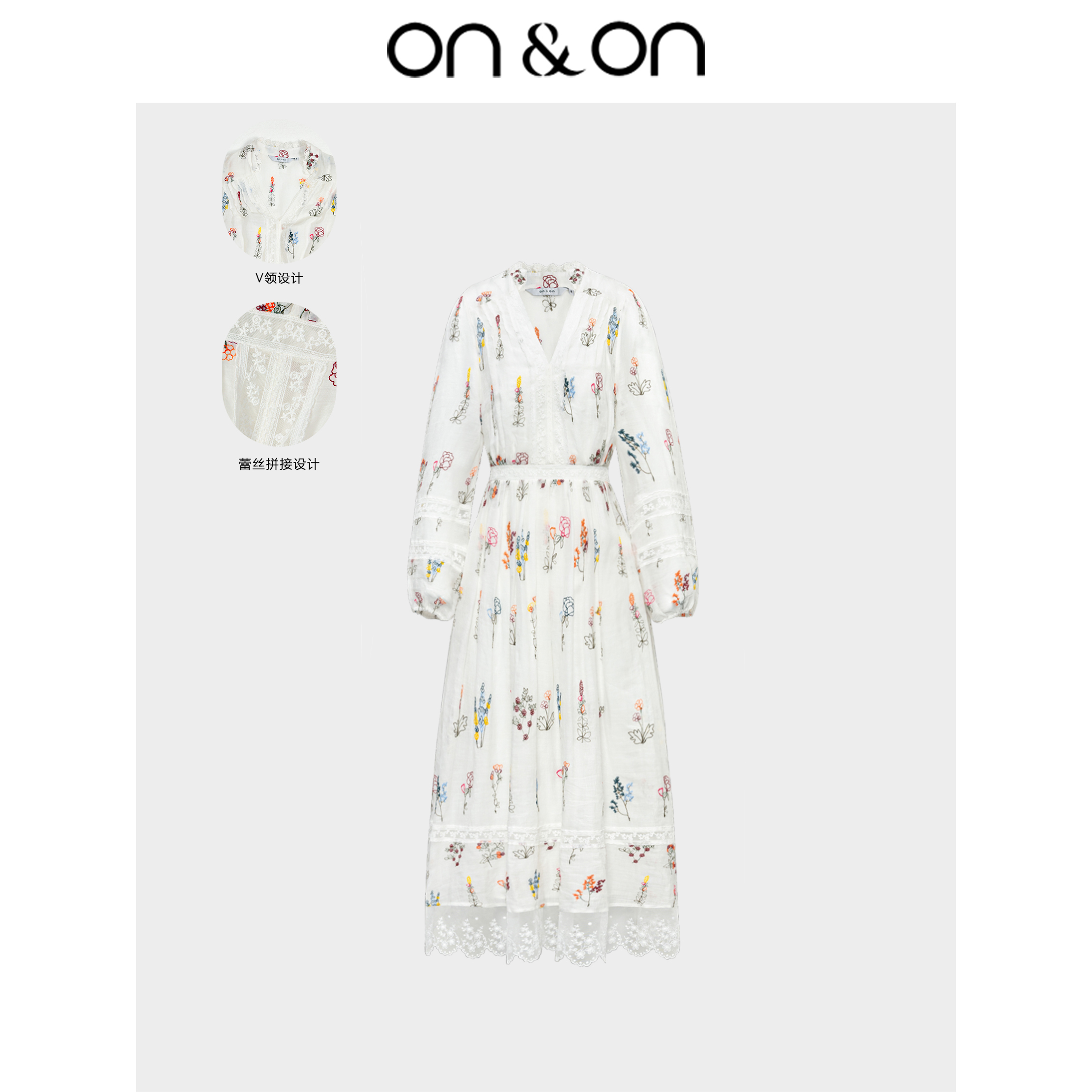 ON&ON/安乃安2025秋季韩系V领重工刺绣100%苎麻防晒减龄连衣裙女