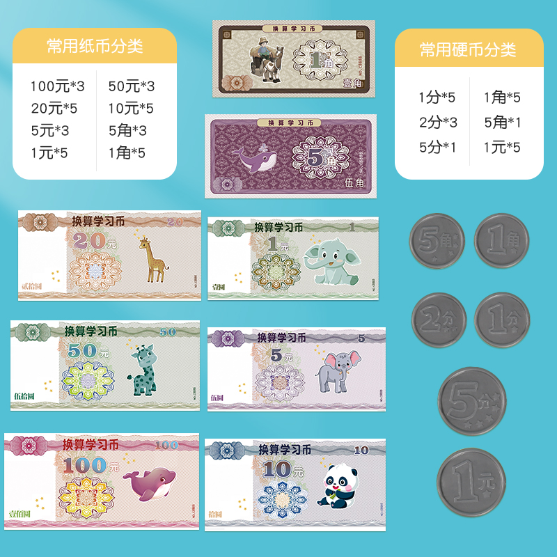 人民币纸币小学生一年级儿童学习认识钱币学具教具硬币教学钟表