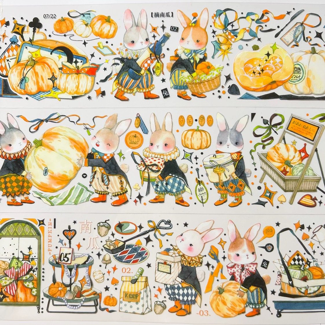 南瓜盛典 PET和纸胶带 亚亚听夏绝版卡通可爱呆萌兔盐系手帐素材