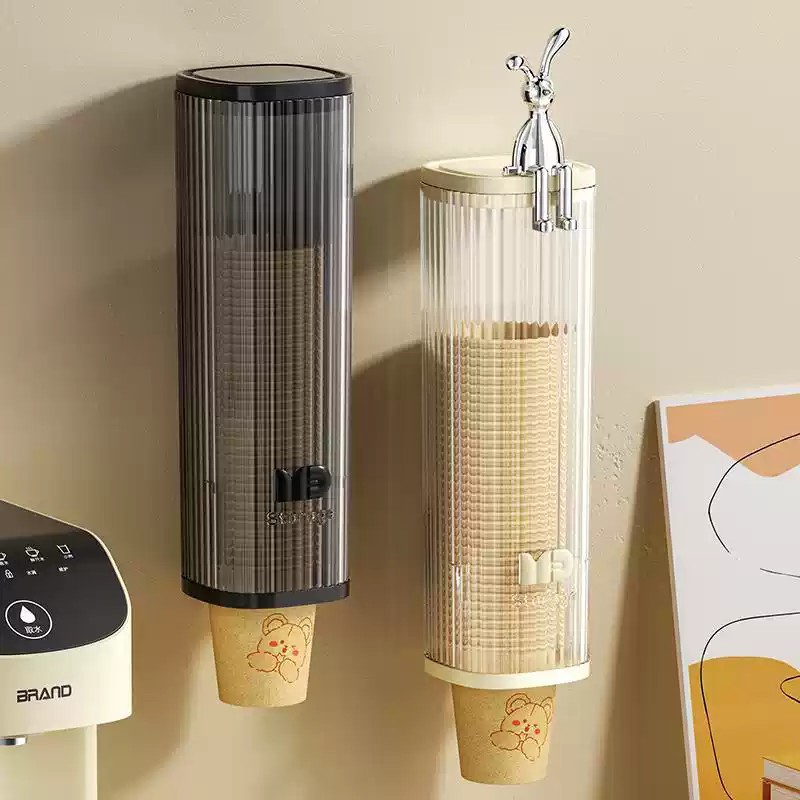 一次性杯子取杯器纸杯架饮水机放杯子收纳置物防尘免打孔挂墙家用