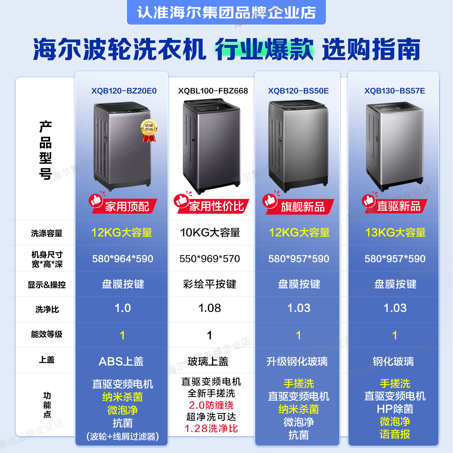 [国补减20%]海尔波轮洗衣机10/12公斤大容量家用全自动变频旗舰店