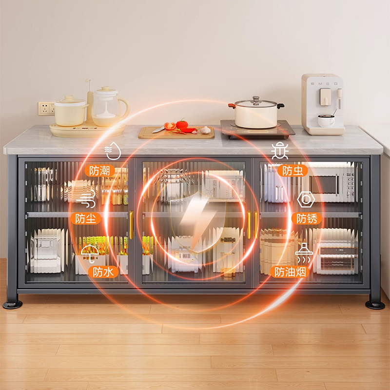 厨房置物架落地多层岩板收纳柜多功能工作台靠墙储物橱柜层板折叠
