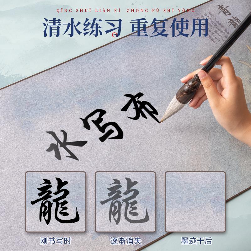 高级仿宣水写书法布专用套装初学者练毛笔字水写布速干空白加厚锦缎练习布卷轴国风高清微喷神兽第四代水洗布