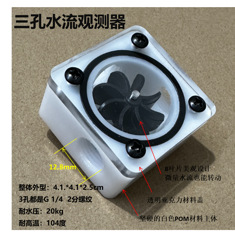 电脑水冷水流计主轴电机水泵流量器流体温度观测器透明水流指示计