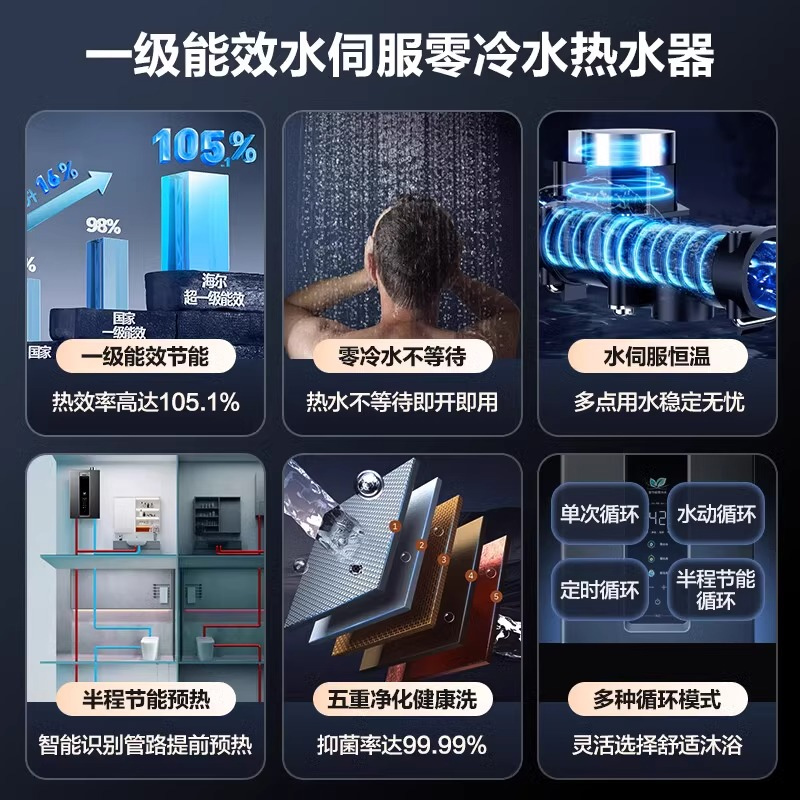 海尔燃气热水器16升家用超一级能效水伺服双增压零冷水恒温节能