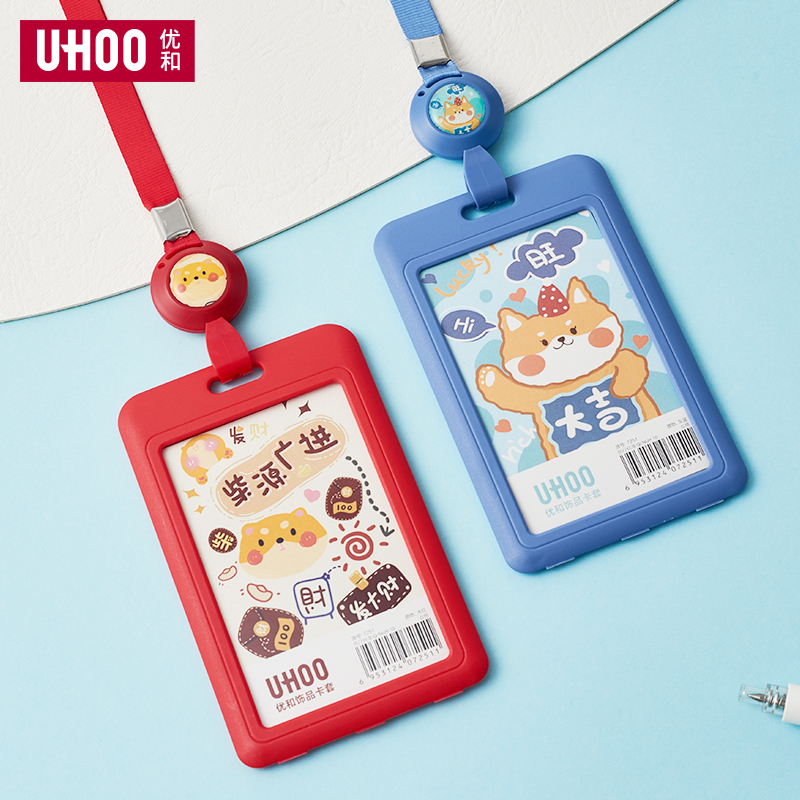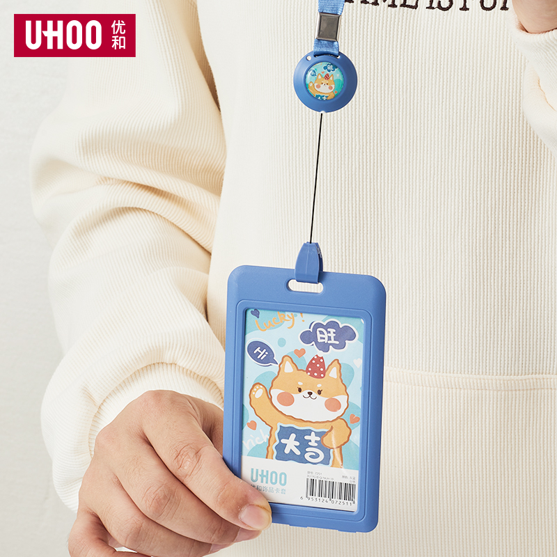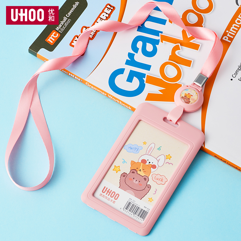 UHOO优和文创小动物系列小中大学生卡套带挂绳校园幼儿园接送卡饭卡公交卡胸牌透明卡通可伸缩耐用挂脖证件套