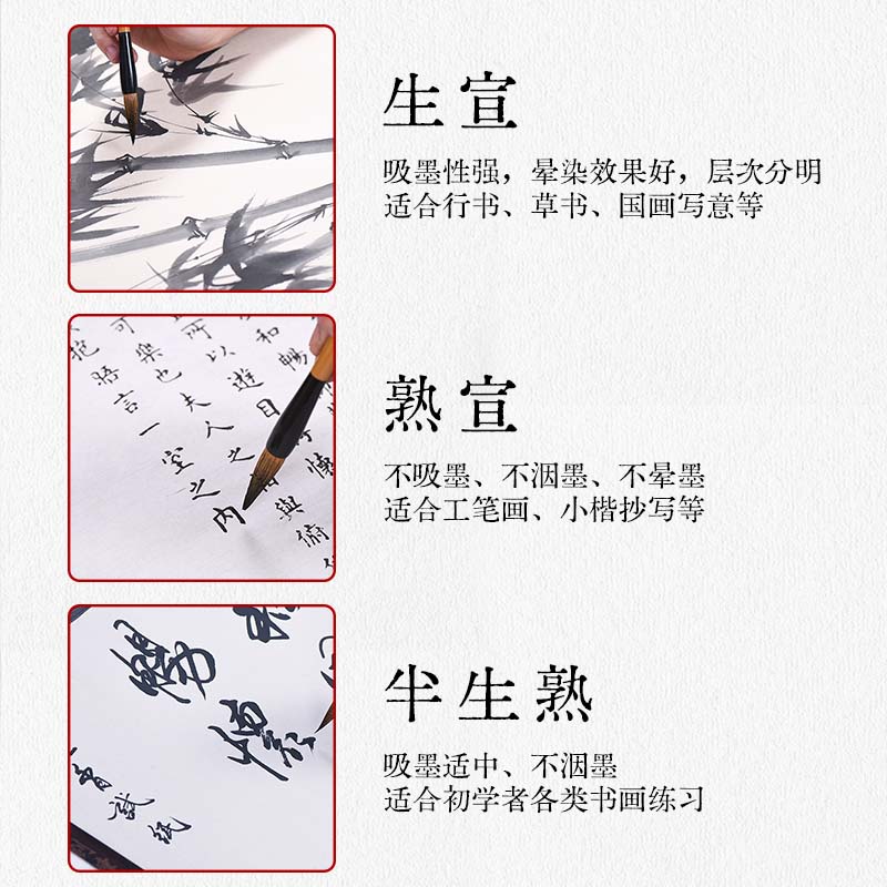 宣纸书法专用纸半生半熟对开纸100张四尺国画工笔画学生熟宣写毛笔字练习用作品纸半生熟四开六尺三开三尺