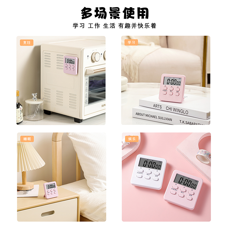 学生学习定时器厨房计时器提醒器大声倒计时器电子闹钟秒表钟磁吸商用闹钟儿童自律电子多功能表可立时间管理