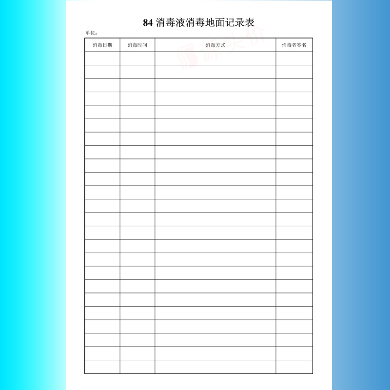 84消毒液消毒地面记录表桌面每日清洁卫生院消毒场所灭菌消杀定做
